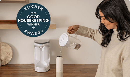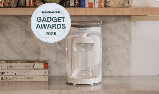 Esquire named the AquaTru Carafe the Best Water Purifier for its compact footprint and four-stage Ultra Reverse Osmosis® filtration that outperforms single-filter pitchers.